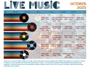 The Groovin’ Grove is an intimate cocktail lounge with 1970s living room vibes and a big sound! Known for its top-tier live music lineup featuring some of the region’s best working talent. Guests can enjoy thoughtfully crafted beverages, crave-worthy burgers, and rotating specials—all in a laid-back setting that puts the music front and center.